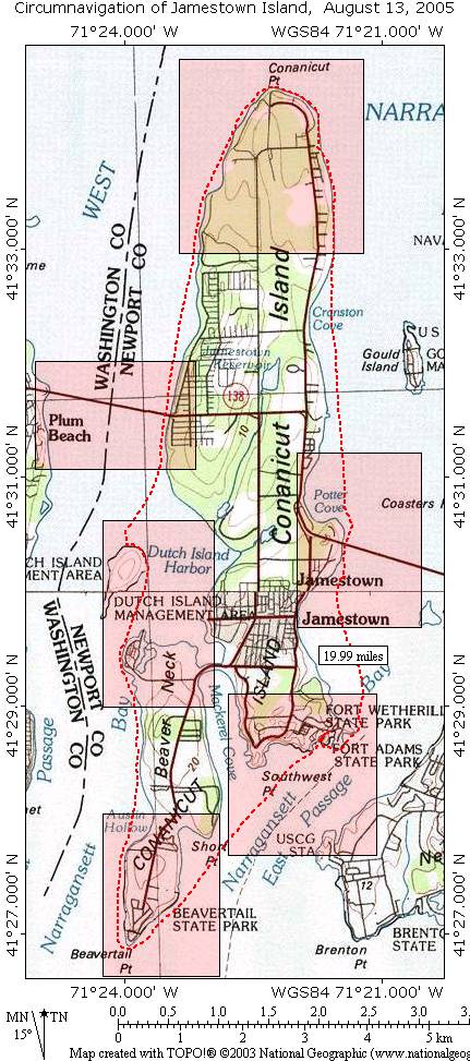 From Ft Wetherill, Circumnavigation of Jamestown Island