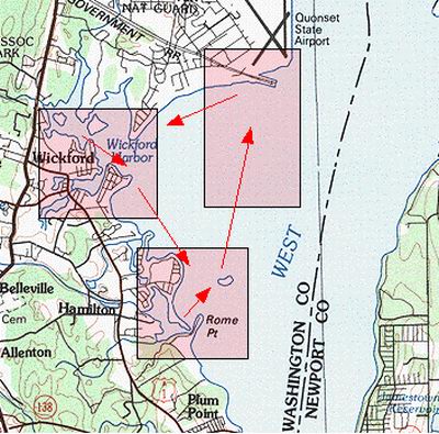 Wilson Park, Wickford, to Bissel Cove to Quonset Point