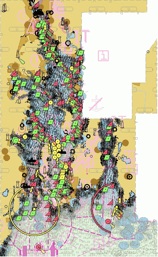 Instructions: Scroll down below the User Agreement and click the [Proceed to NOAA ENC Downloads] to acknowledge the conditions under which the government offers the charts, the next screen allows you to choose a graphical or textual method of browsing the charts. The latest Java file (ignore if you don't understand) is required to operate the graphical version. (I could not get it to work on dialup, but can on broadband.) I found the interface clumsy and could not get it to work. Easier to use is the text version. Once into the text version, at the top, pull down the "Show XX charts a page" menu and click on the maximum number (671 in Fall 2008). This will allow you to search (Use the 'Ctrl F' dialog box) for narra (don't need the full word), or any other unique partial map name. The icon in the left column of the large table gives you a crude low resolution map of the location for that specific chart so you have an idea that you have the right one. You may click as many selection boxes in the right column to download the charts you want. Then at the top of the page click on the "Review Selection" button. After a pause you will see all the maps ordered and can now click the "Order Selections" button. The server will combine all your selections into a single zip file (it is a free order) highlighted in red. Click on the "Download" button and save it in a convenient directory or folder. Unzip the files into a working directory or folder on your computer and use one of the programs below for viewing.