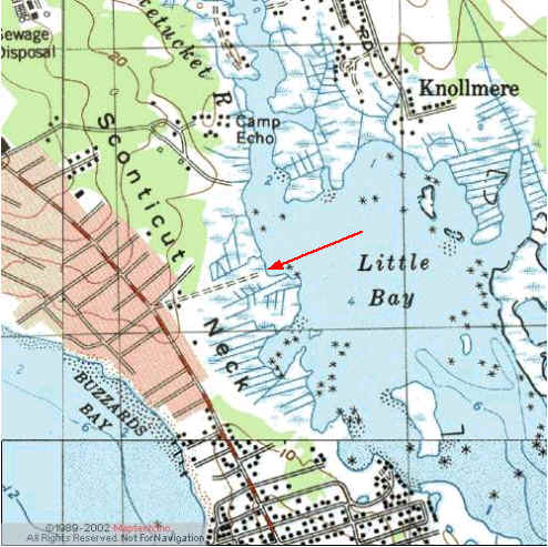 Fairhaven, Sconticut Neck, West Island, Mass.: Directions from Rt 195, take Exit 18 (Fairhaven/Rt 240 south). Cross the intersection with Rt 6. Go straight about one mile and take a left on Edgewater St. Follow the dirt road to your right. Park well back from the launch ramp, as it may flood at high tide. Full or new moon high tides may also cover low spots in the road and parking area, especially during high south winds or storm surges. This is a broad open area, there are no public sanitary facilities.