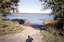 Mount Hope Fishing Access, Bristol: (State Fishing Access Site, public access) Directions from Rt 136 north or south, At Annawamscutt Drive, (stoplight at junction), proceed to the end of the road. Turn on to the dirt access road just before the east end of Annawamscutt Drive (which is also a CRMC designated public ROW.) This potholed road leads about 300 ft to the parking lot. The shore access has a single-width, concrete-slab boat ramp with a small breakwater fronting Mount Hope Bay. Adjacent to the boat ramp is a cobble beach and a fringing marsh also suitable for launching kayaks. There is parking for about 10 vehicles with trailers or about 20 vehicles without trailers, with possible additional parking along the entrance road. There are no public facilities, but bushes provide some limited privacy.