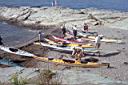 Kings Beach Fishing Access, Newport: Directions from Newport, follow Ocean Drive out to Brenton Point State Park. About 1/2 mile east of the Park, watch for the Kings Beach/Fishing Access sign (near Price Neck). The ramp is in bad shape but suitable for hand launching. There is parking for about 15 cars. There is additional parking and access for hand launching kayaks on the beach about 100 yds to the west of the fishing access. There are no public sanitary facilities, but bushes provide some limited discrete privacy. This launch is directly into the open ocean and can be dangereous in heavy weather.