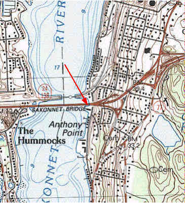 Sakonnet Bridge Access, Tiverton: (CRMC designation public access, land under the bridge is State owned.) Directions from Rt 24/Rt138 north or south. Exit at Rt 77 (Exit 5) to Tiverton. Continue south on Rt 77 and make a really hare right turn onto Riverside Drive. Under the Sakonnet Bridge is a hard-packed sand boat launch ramp. There is room for several vehicles with trailers to park across the street. Parking for a few vehicles without trailers is available on the street. Riverside Marine boat launch is located just to the north. Not a scenic location, but with adequate access to the Sakonnet River and Mount Hope Bay. The Sakonnet Boathouse, a kayak retailer is on the south side of the bridge. There are no pubic sanitary facilities in the area.