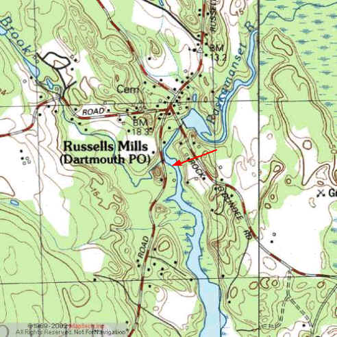 Slocums River -Town Landing Launch, Dartmouth, Mass.: Directions from Providence on Rt 195, exit at Faunce Corner (Exit 12), go right at end of ramp onto Faunce Corner Rd. At Route 6 (Liberty Travel, Mobil station) go straight across onto Old Westport Rd. At the fork, bear left (it's more like straight) onto Chase Road and continue to end (about 3.5 mi.) At the end (Russells mills Rd) take a right, go about 1 mile. Watch for Davoll's Store - yellow building on left. Take the left after the store, which begins Horseneck Rd. About 1/4 mi. down you will see the Town Landing Launch on left near tennis courts and a dirt parking area. Site has a restroom and running water in Season.