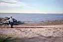 Sunset Beach (Heads Beach) Jamestown: (CRMC designation n/a) From Rt 138 from West, exit just off the Jamestown Bridge at Helm St., take three right turns to go north under the bridges and find the beach in about about a mile . From East, exit Rt 138 at North Main St, and take left at Frigate St, head West to the shore and turn North to the Beach. The Park is a large grassy area with a dirt road at the North end. There is room to park about 10 cars..