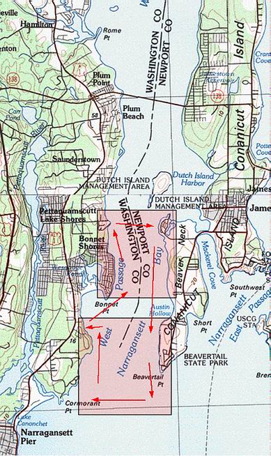 West Passage Loop, S. Ferry to Beavertail Buoy to Whale Rock