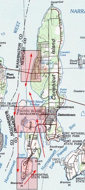 Heads Beach (Sunset Beach), Jamestown, to Beavertail Point
