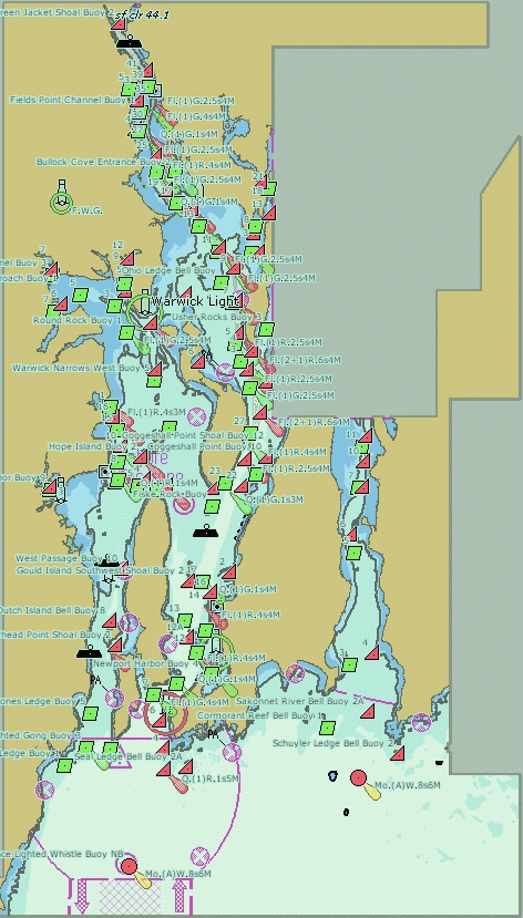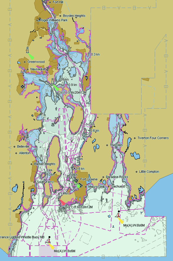 Instructions: Scroll down below the User Agreement and click the [Proceed to NOAA ENC Downloads] to acknowledge the conditions under which the government offers the charts, the next screen allows you to choose a graphical or textual method of browsing the charts. The latest Java file (ignore if you don't understand) is required to operate the graphical version. (I could not get it to work on dialup, but can on broadband.) I found the interface clumsy and could not get it to work. Easier to use is the text version. Once into the text version, at the top, pull down the "Show XX charts a page" menu and click on the maximum number (671 in Fall 2008). This will allow you to search (Use the 'Ctrl F' dialog box) for narra (don't need the full word), or any other unique partial map name. The icon in the left column of the large table gives you a crude low resolution map of the location for that specific chart so you have an idea that you have the right one. You may click as many selection boxes in the right column to download the charts you want. Then at the top of the page click on the "Review Selection" button. After a pause you will see all the maps ordered and can now click the "Order Selections" button. The server will combine all your selections into a single zip file (it is a free order) highlighted in red. Click on the "Download" button and save it in a convenient directory or folder. Unzip the files into a working directory or folder on your computer and use one of the programs below for viewing.