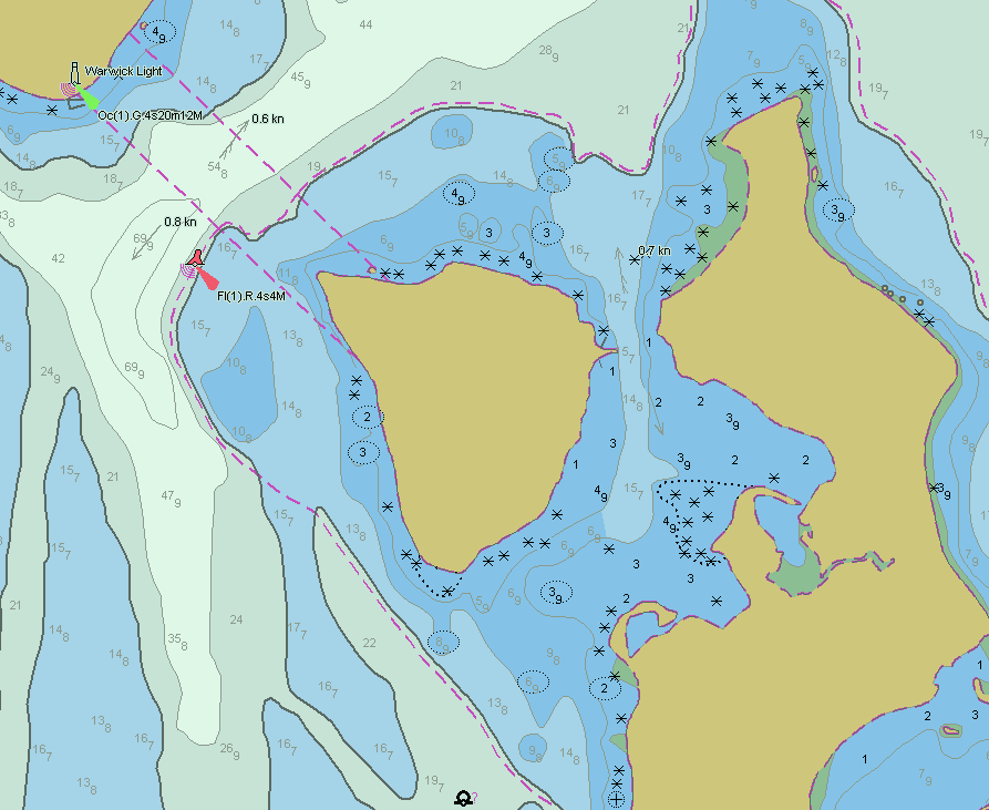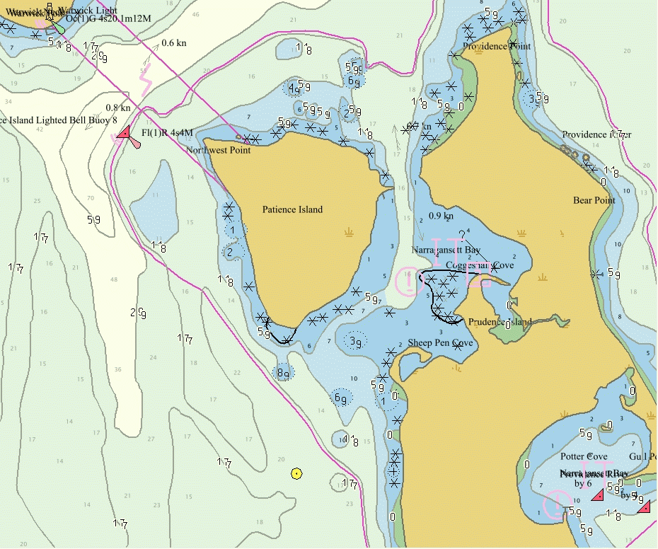 Patience and Prudence Islands with Coastal Explorer using ENC chart.