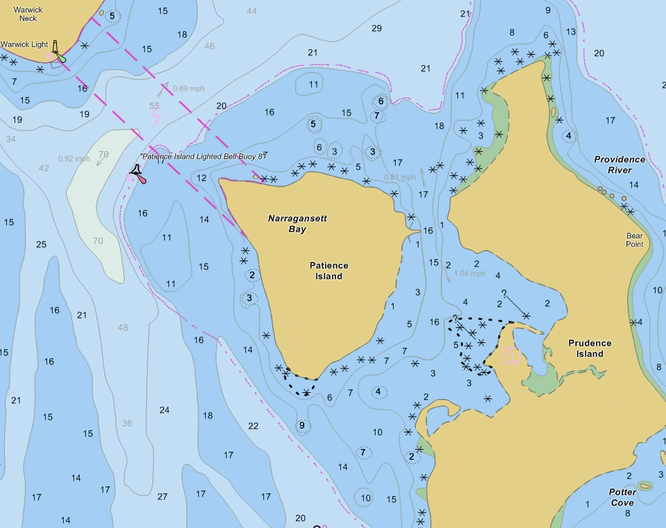 Patience and Prudence Islands with Coastal Explorer using RNC chart..