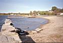 This is an open, grassy town park on the shores of Bristol Harbor, off Thames Street, between the extensions of Franklin and Oliver Streets. There is a wide, concrete road parallel to the shoreline, with room for parking. The shoreline has a rock wall used for fishing, and a gravel beach area which serves as a wide boat-launching area. There is parking for vehicles with trailers adjacent to the beach. This park is the southern end of the East Bay Bicycle Path. There are no public restrooms in the area.