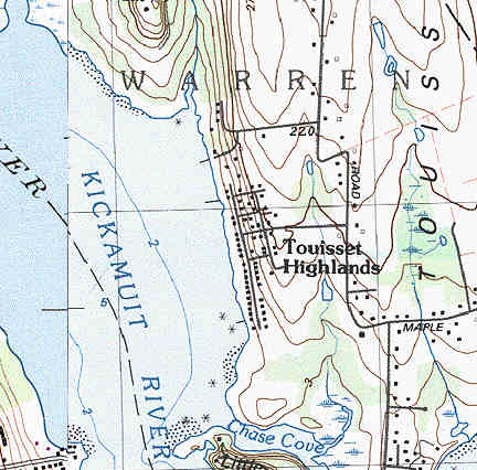 Chace Avenue Extension, Warren: (CRMC designation: 4 public, 3 not public, on Shore Line Drive) Directions from Rt 114 either north or south, continue on Rt 103 east on Child State Hwy, over the Kickamuit River. Take right on Long Lane to end, take left on Barton Ave., take right on Touissett Rd., then right on Chace Ave. This right-of-way was marked and upgraded under the DEM Shoreline Access Program. There is a narrow gravel road that leads into the Kickemuit River and can be used for a boat launch for trailered boats. There is limited on-site parking.
