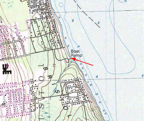 Mount Hope Fishing Access, Bristol: (State Fishing Access Site, public access) Directions from Rt 136 north or south, At Annawamscutt Drive, (stoplight at junction), proceed to the end of the road. Turn on to the dirt access road just before the east end of Annawamscutt Drive (which is also a CRMC designated public ROW.) This potholed road leads about 300 ft to the parking lot. The shore access has a single-width, concrete-slab boat ramp with a small breakwater fronting Mount Hope Bay. Adjacent to the boat ramp is a cobble beach and a fringing marsh also suitable for launching kayaks. There is parking for about 10 vehicles with trailers or about 20 vehicles without trailers, with possible additional parking along the entrance road. There are no public facilities, but bushes provide some limited privacy.