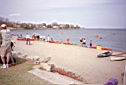 North Kingstown Town Beach, Wickford: (Town Beach) Directions from Rt 95, take Rt 4 south, exit at Rt 102 east into Wickford. From the south come up Rt 1 to join with Rt 4, exit at Rt 102 to Wickford. Continue on 102 thru stop light (pass by The Kayak Center), go over the concrete arched bridge (Rt 1A), and turn left on Beach St. Follow Beach St. to the very end and turn left. Go to the parking area after the snack bar. The sandy beach is long and narrow and backed by a three-foot-high bulkhead. Just behind the beach is a large grassy area shaded by tall trees, with many picnic tables, grills, playground equipment, ball fields, and a basketball court. Access is restricted to town residents during the summer. Off-season launching is OK. Sanitary facilities are available only in-season.