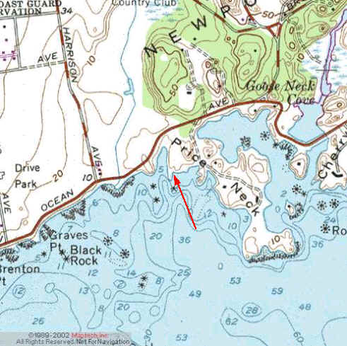 Kings Beach Fishing Access, Newport: Directions from Newport, follow Ocean Drive out to Brenton Point State Park. About 1/2 mile east of the Park, watch for the Kings Beach/Fishing Access sign (near Price Neck). The ramp is in bad shape but suitable for hand launching. There is parking for about 15 cars. There is additional parking and access for hand launching kayaks on the beach about 100 yds to the west of the fishing access. There are no public sanitary facilities, but bushes provide some limited discrete privacy. This launch is directly into the open ocean and can be dangereous in heavy weather.