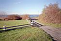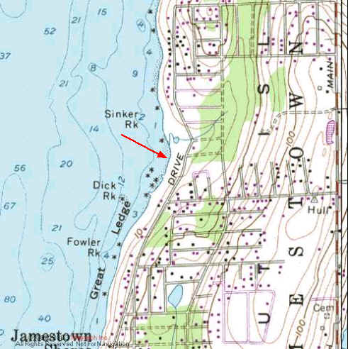 Sunset Beach (Heads Beach) Jamestown: (CRMC designation n/a) From Rt 138 from West, exit just off the Jamestown Bridge at Helm St., take three right turns to go north under the bridges and find the beach in about about a mile . From East, exit Rt 138 at North Main St, and take left at Frigate St, head West to the shore and turn North to the Beach. The Park is a large grassy area with a dirt road at the North end. There is room to park about 10 cars..